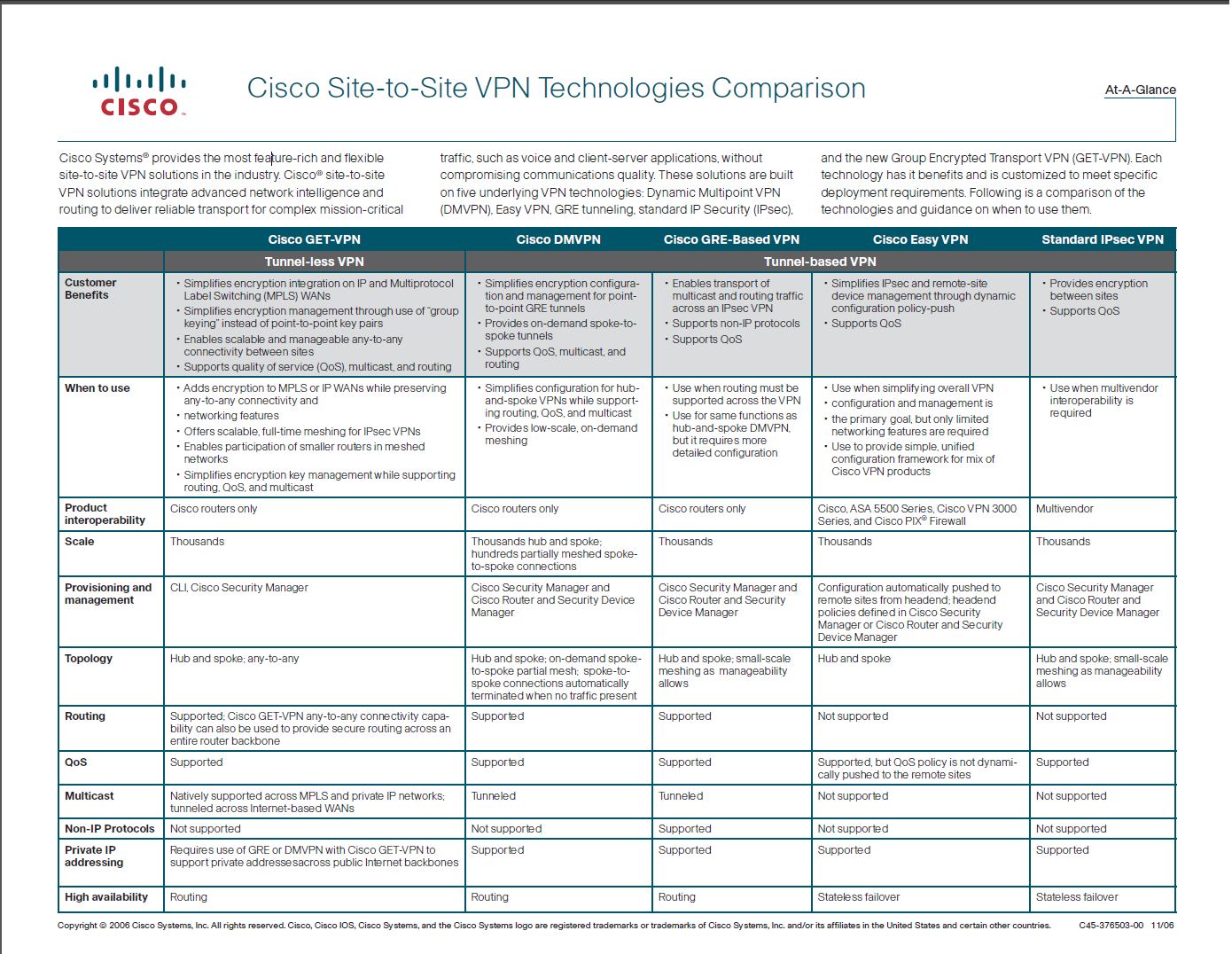 Just found a really good comparison chart that shows that differences between Cisco’s Site to Site VPN technologies and when one can use them.