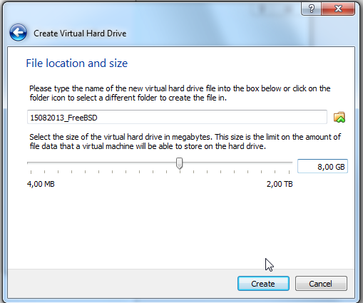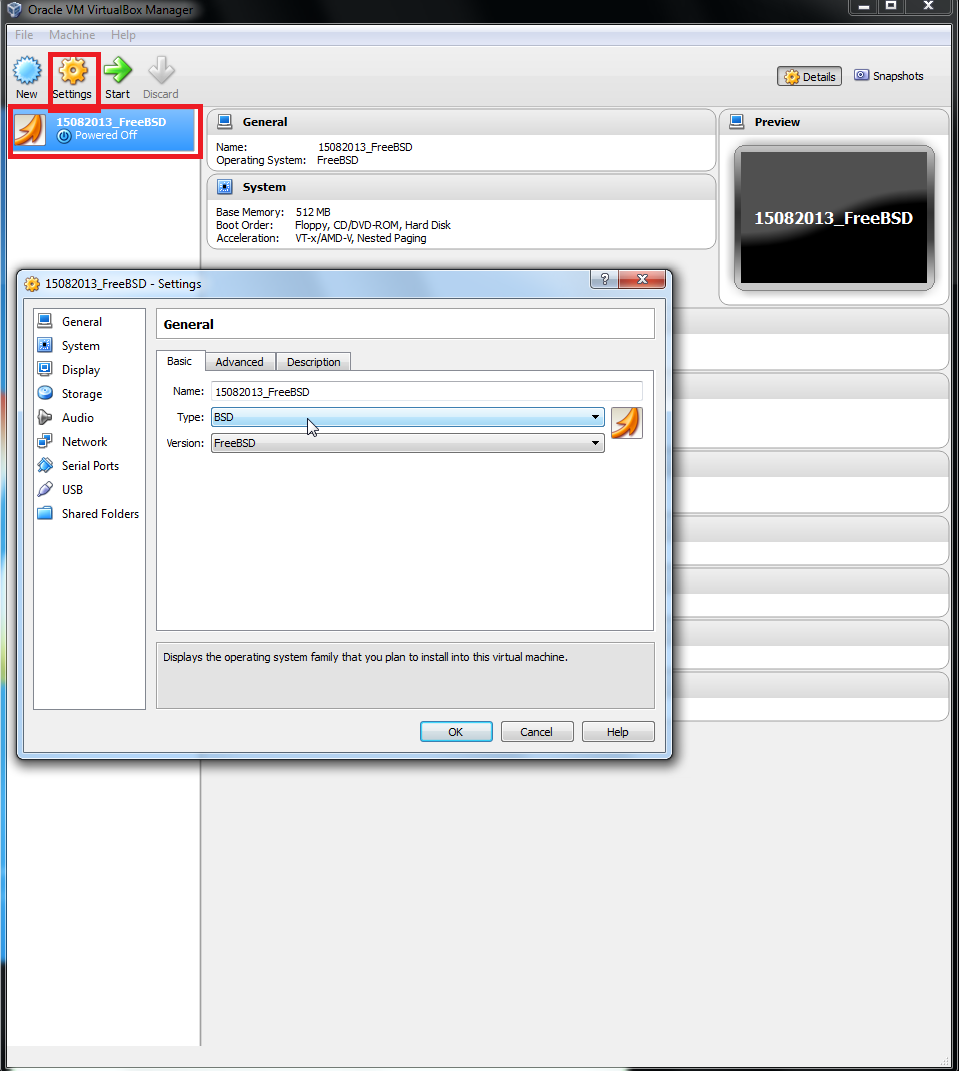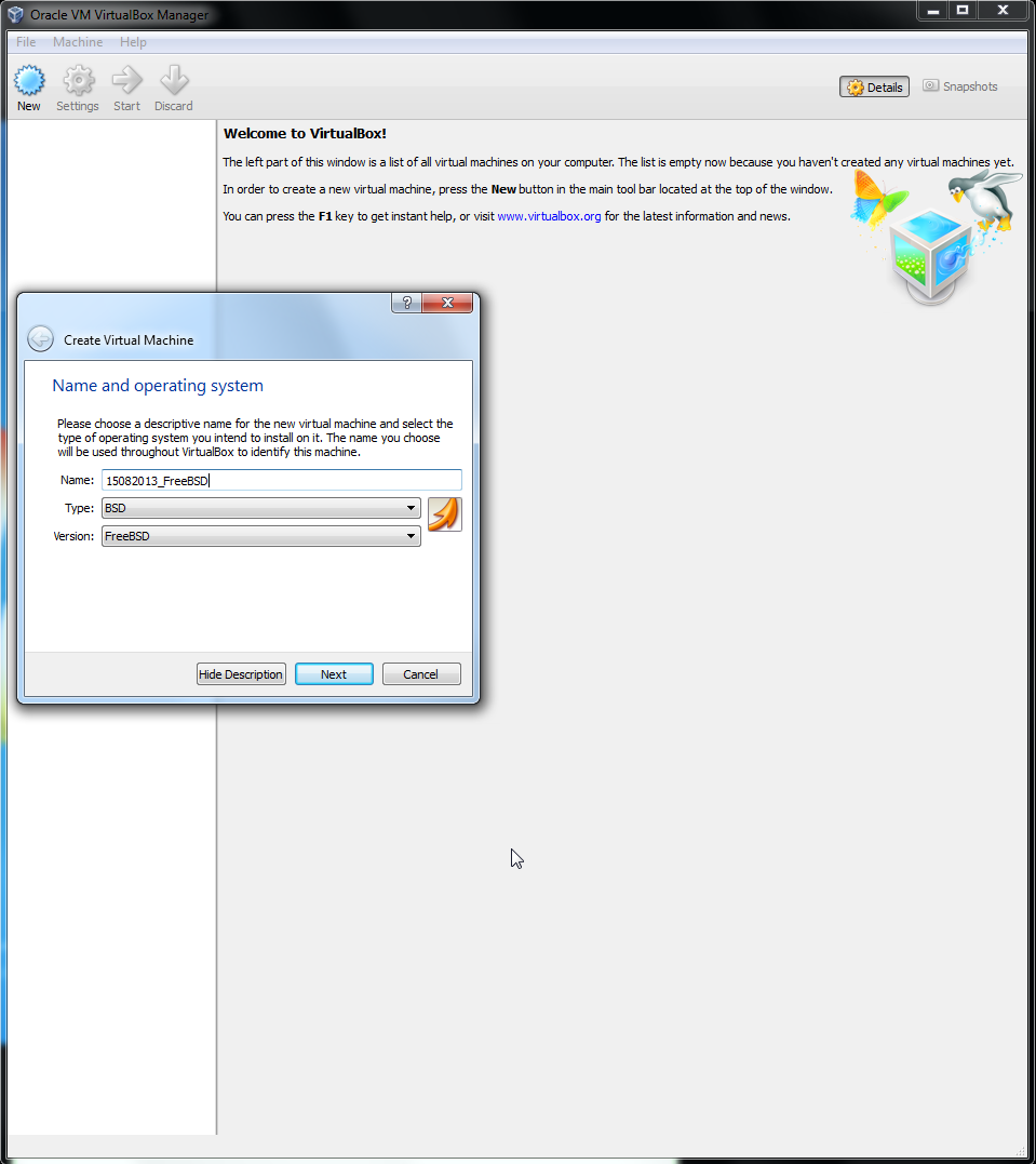 We start off by creating a virtual Machine that will use the FreeBSD OS.