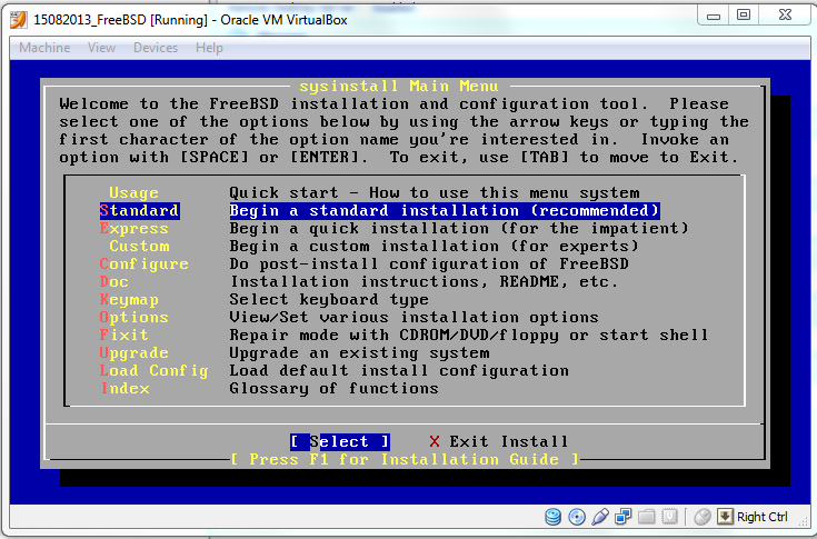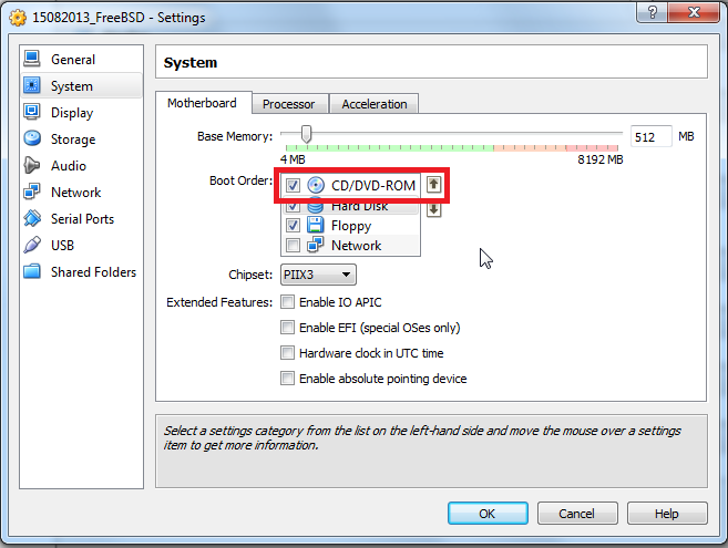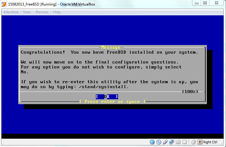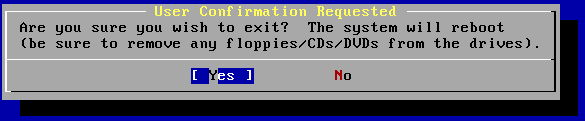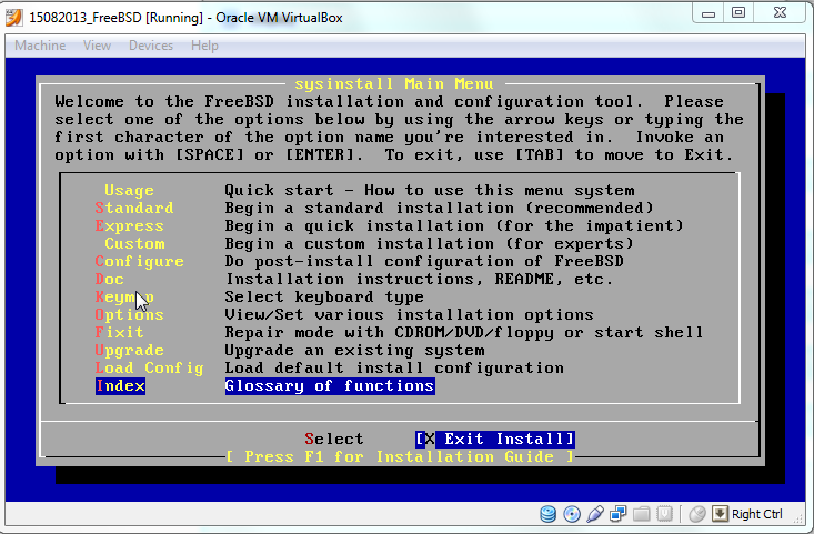 We need to Exit Install. Then switch the machine off. Change the boot order so that it starts with the HardDisk and not the CD…and we done