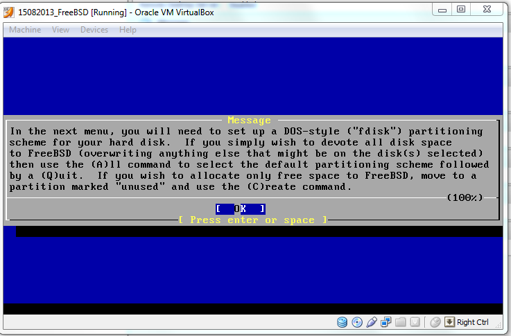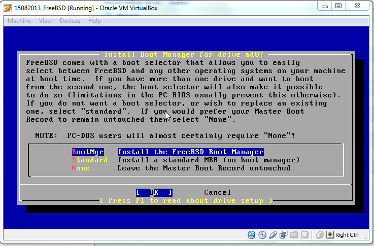 Next, we need to create fdisk. Hit A to use the entire disk then Q to exit. Next we Install BootManager