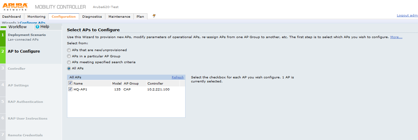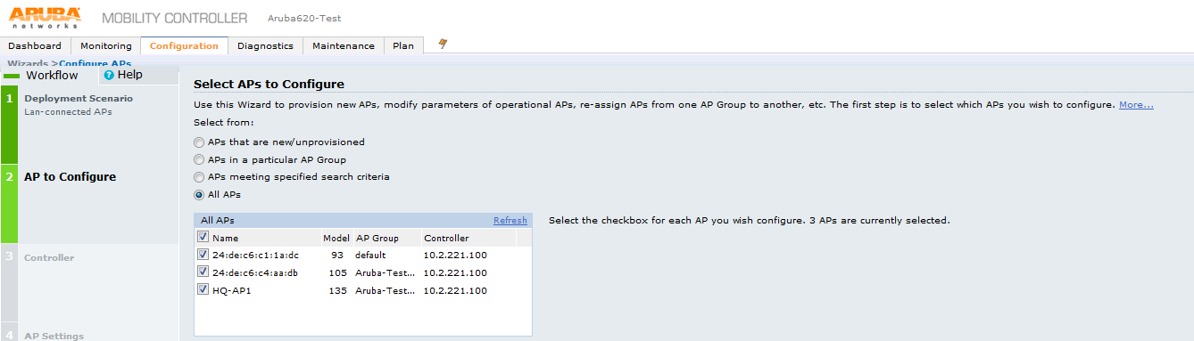 Hmm, we only found one AP to configure yet there are 4 connected APs.