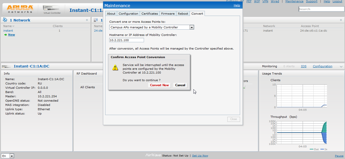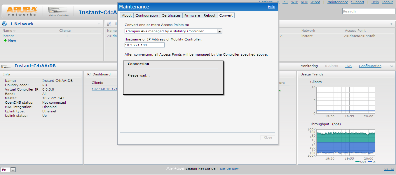 Moving on to the next AP…Console…Connect to Computer …Convert :). Aruba 93..Make me proud 😉