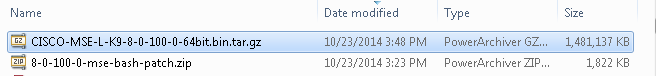 - Verify that the filename remains unchanged.The correct filename is CISCO-MSE-L-K9-8-0-100-0-64bit.bin.tar.gz, if it has named, it should be renamed correctly.