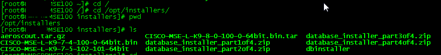 - Verify that the MSE image file (CISCO-MSE-L-K9-8-0-100-0-64bit.bin.tar) is in the Mobility Services Engines /opt/installers directory.