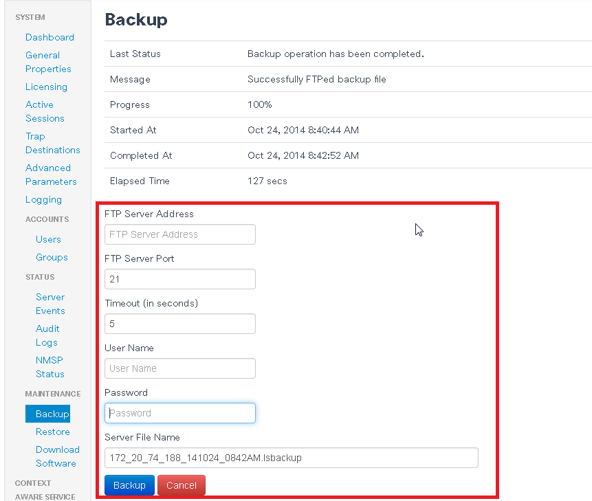 - Backup the MSE using Prime Infrastructure