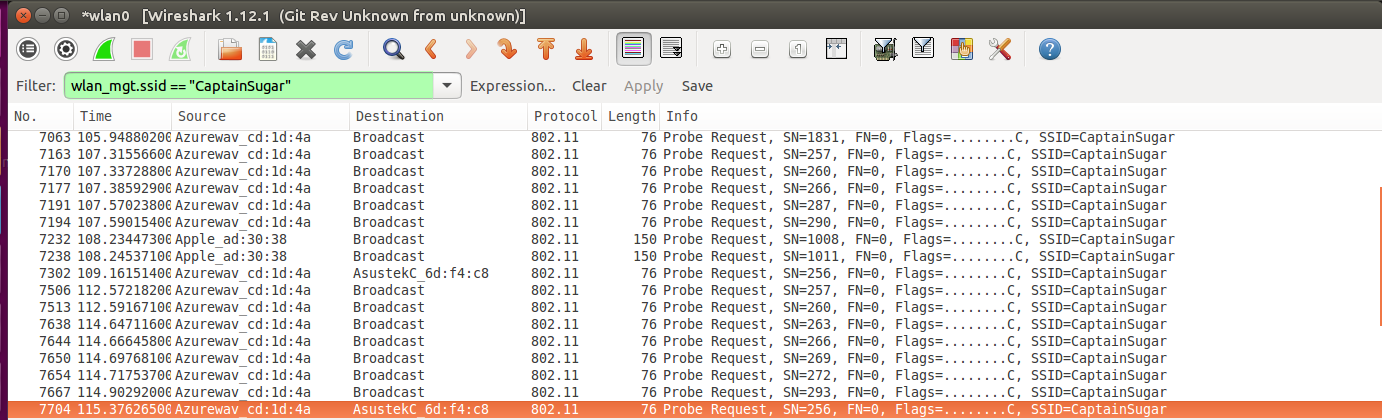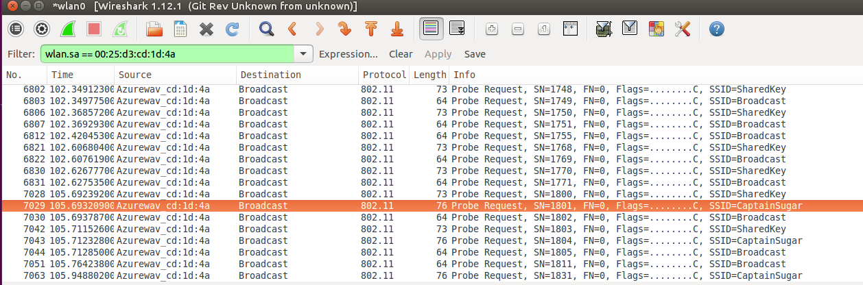 Here, I filtered the source MAC address of my rejected Laptop that was sending probes.