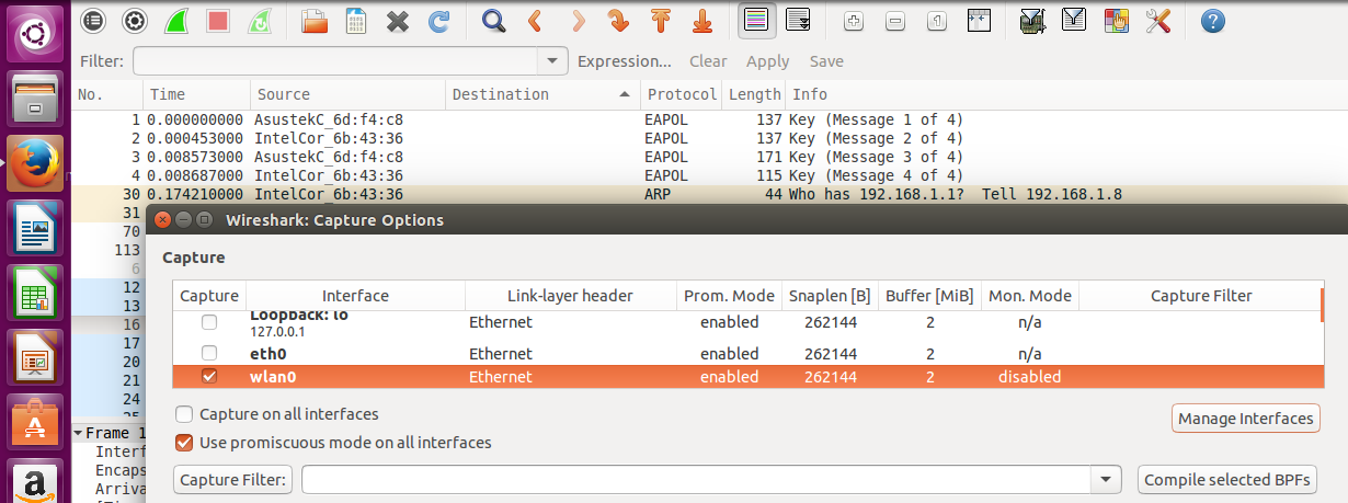 To capture the real 802.11 packets and radio layer information, then we have to capture in “monitor mode”. We need to disable the translation/filtering and see what’s “really” going on inside your WLAN. Then I read: Note that Monitor mode is not supported by WinPcap, and thus not by Wireshark or TShark, on Windows. It is supported, for at least some interfaces, on some versions of Linux, FreeBSD, NetBSD, OpenBSD, DragonFly BSD, and Mac OS X. Bummer!! Coffee Break. Will be back once I install Ubuntu 🙂