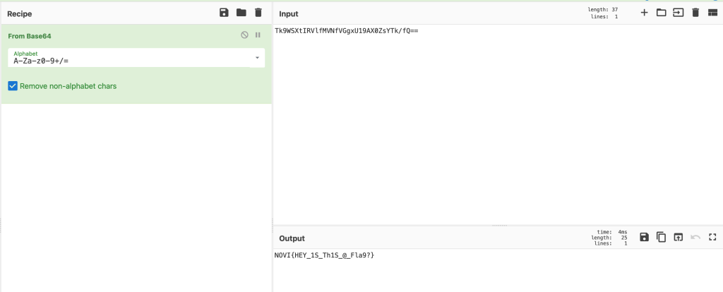 The decoded text gives us the flag: NOVI{HEY_1S_Th1S_@_Fla9?} which when submitted, earns us over very first point :). Let’s update the Badge Server too with the same flag.