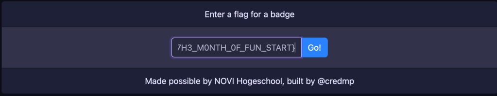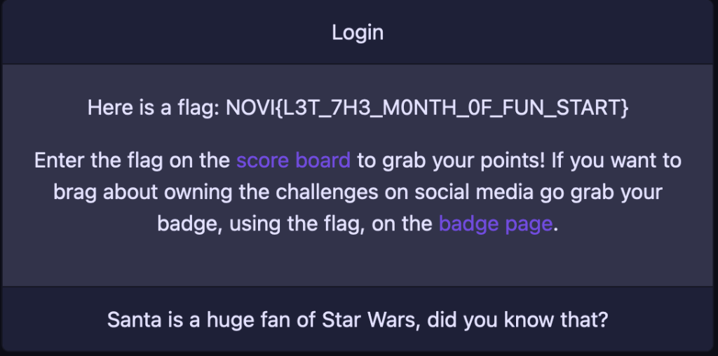 On submitting the password, we get the flag NOVI{L3T_7H3_M0NTH_0F_FUN_START}