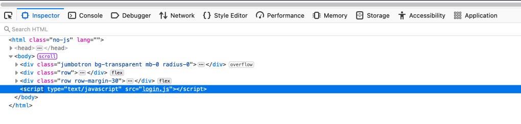 Let’s try inspect the page with Developer tools. We immediately notice that JavaScript is in play here.