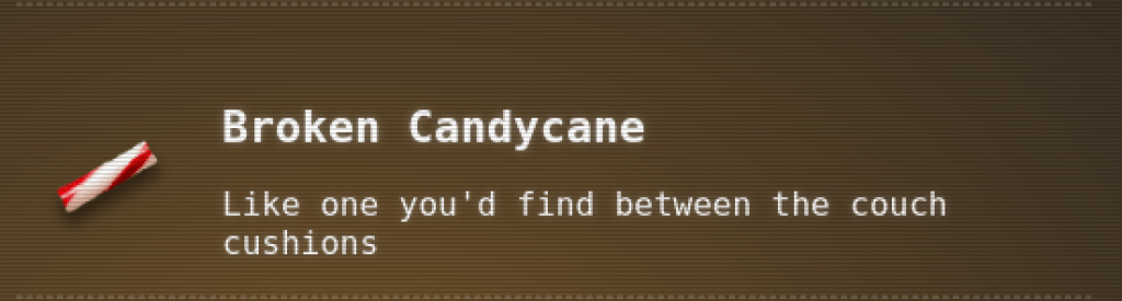 I decide to first locate the object that Jewel Loggings was referring to. I walked towards the castle and sure enough picked up a Broken Candy cane from the floor.