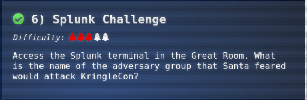 By the writeup deadline, I have only finished 8 of the 12 objectives and 10.5 of the 13 elf tasks. I will update the writeup with solutions once I get a change to review those that I did not attempt or could not go on.
