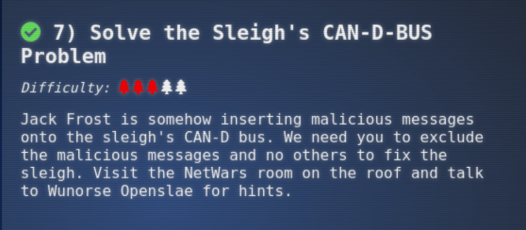 - Objective 7: Solve the Sleigh’s CAN-D-BUS Problem