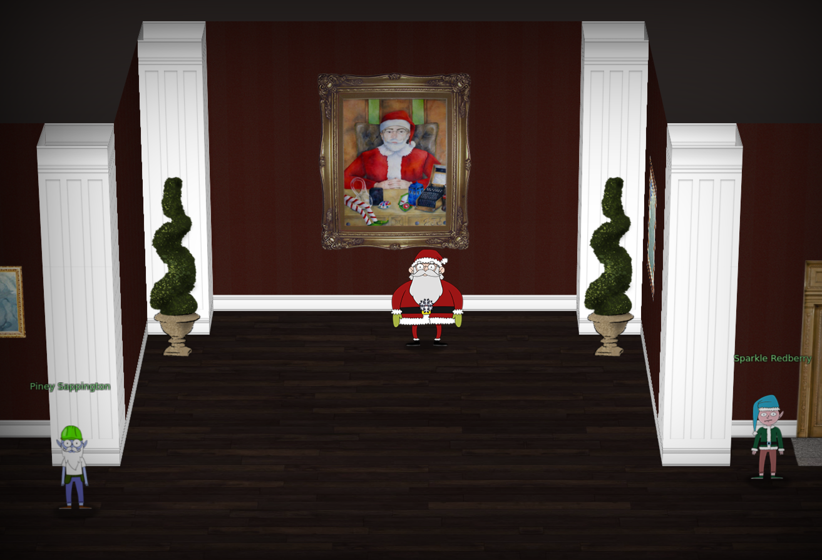 I attempt to review the Naughty/ Nice list but it is only for Santa and Elf Ethicists so let’s teleport and become Santa. As santa, I am able to download the blockchain.dat file. I also have access to Santa's Balcony where Elf Eve Snowshoes is. Other than a "hey Santa", I do not get anything else from him.