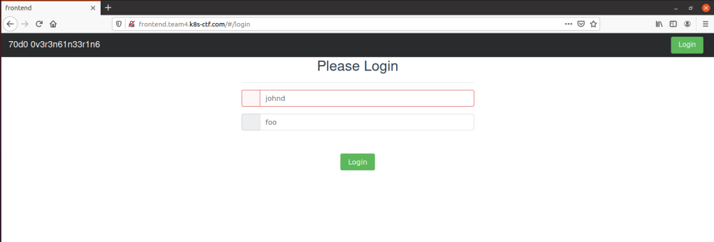 We are supposed to browse to http://frontend.team4.k8s-ctf.com/ and check if all is OK. The network access seems broken.