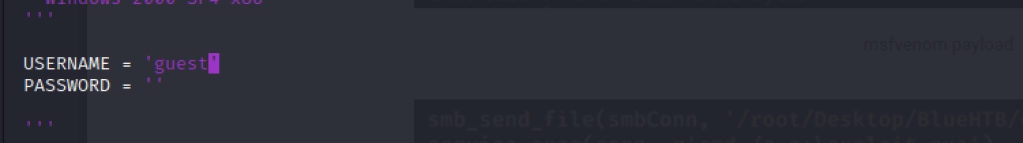 We see that we do have “administrator” and “guest” allowed. Let’s first try with guest since these are normally weaker targets. We need to edit the script and insert the username. We don’t have a password.