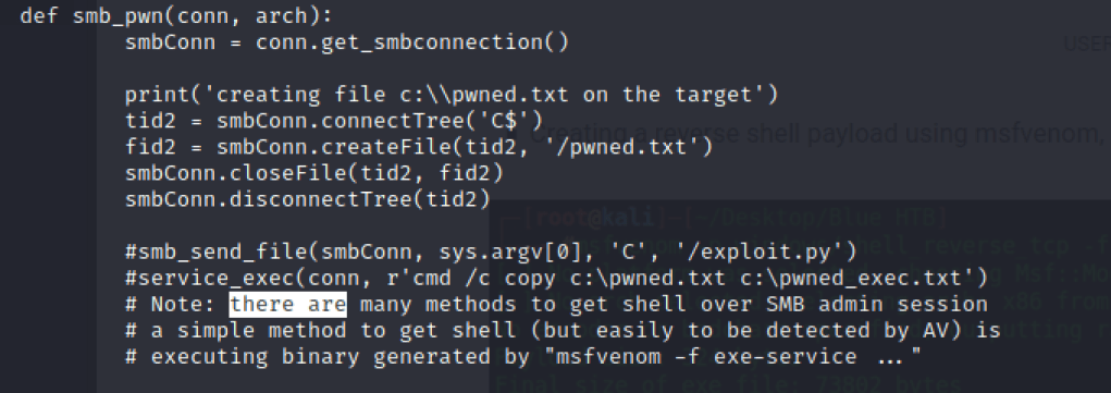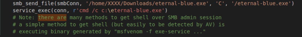 When we read the source file downloaded, a couple of things come up. First, we need to download the mysmb.py file from the specified URL