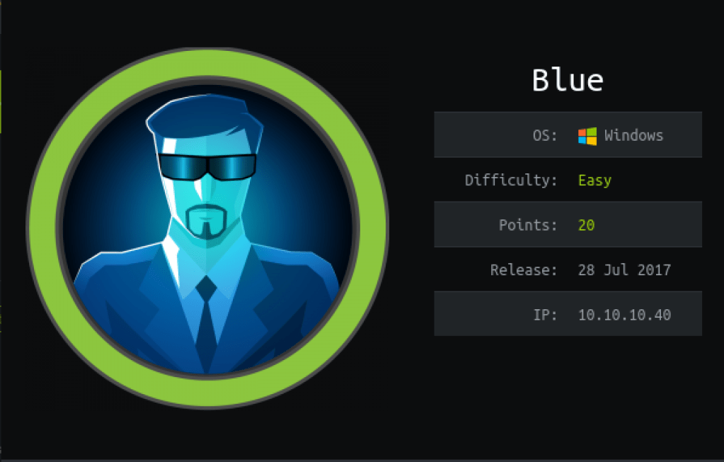 Getting back on HTB. Last time, I had to shift focus after 1 or 2 boxes and did not even have a writeup for them. Let’s see how long I’ll last this time round :). I’m basically starting from scratch now so let’s just say, this is my very first box in my list of X Boxes to come. It’s a windows machine rated easy. It’s running a vulnerable SMB version and hence, we are able to gain both user and system access.
