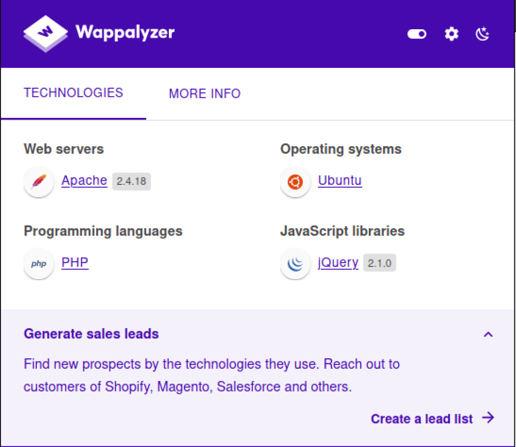 Wappalyzer shows us the version of Apache that is running on the server which would be good to go and start our search for exploits.