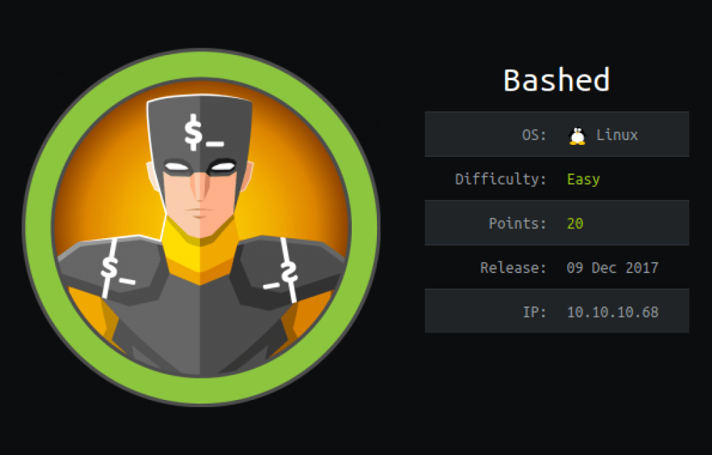 Bashed is a Linux machine rated easy. We gain access to the user flag via basic enumeration. To get the root flag, we have to escalate privileges by taking advantage of a scheduled cron job that can run without a password being required.