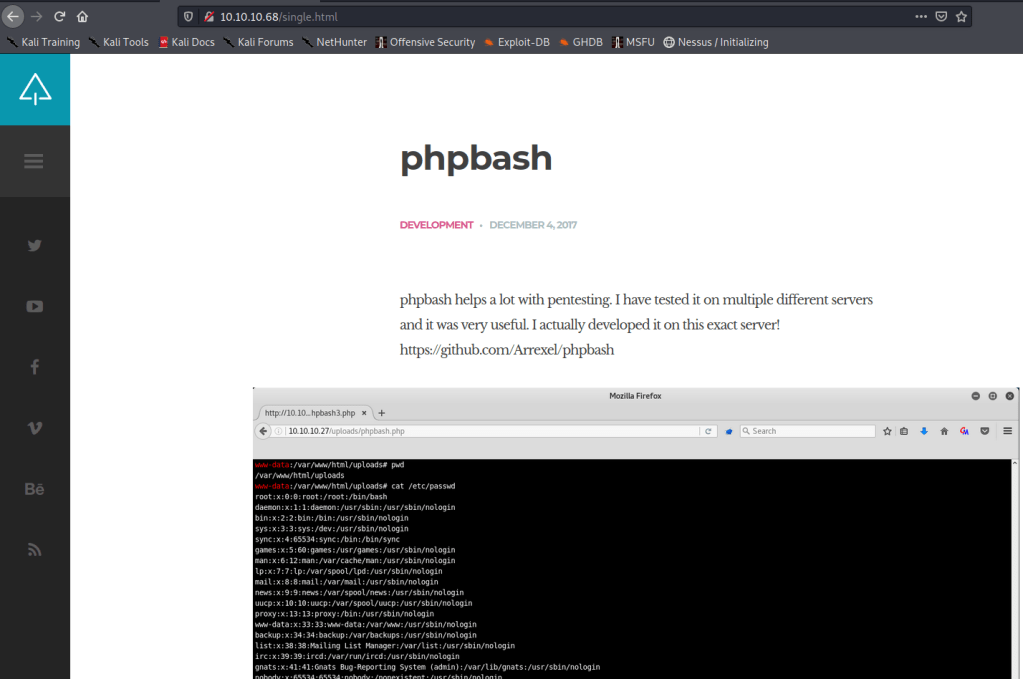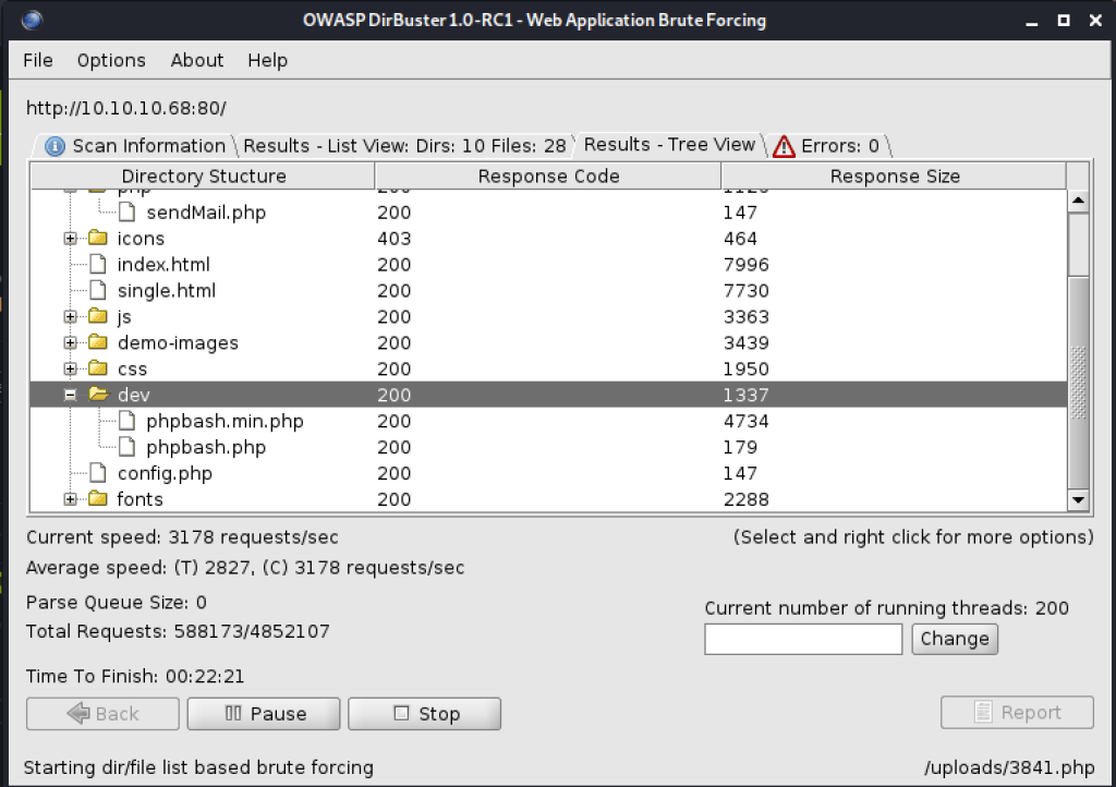 We see a phpbash in the dev folder that seems to match the program that the developer of the site wrote and from the screenshot, it looked as if we could get shell. Let’s try navigate to that path.