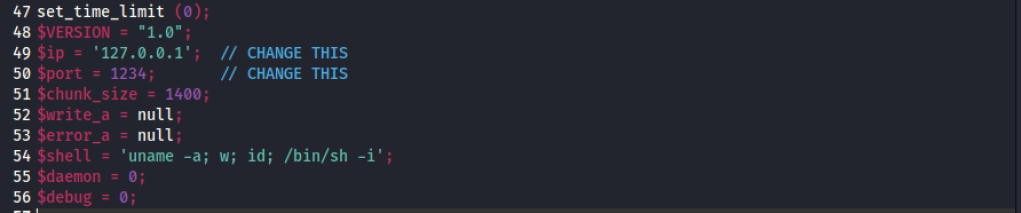 We can try and get a shell here using the following script. We need to modify the IP and port used to point to our IP and listening port.